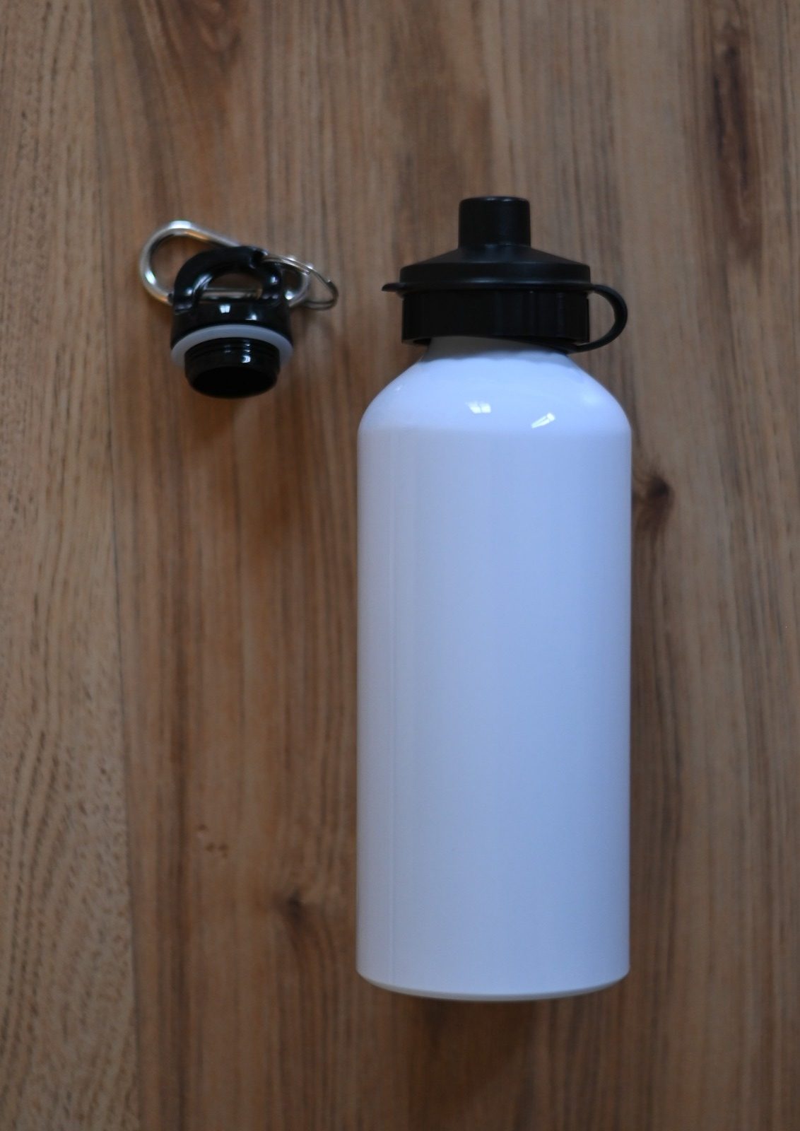 בקבוק לבן מנירוסטה עם פיה מתחלפת. בגובה 18 ס”מ ובקוטר 7.2