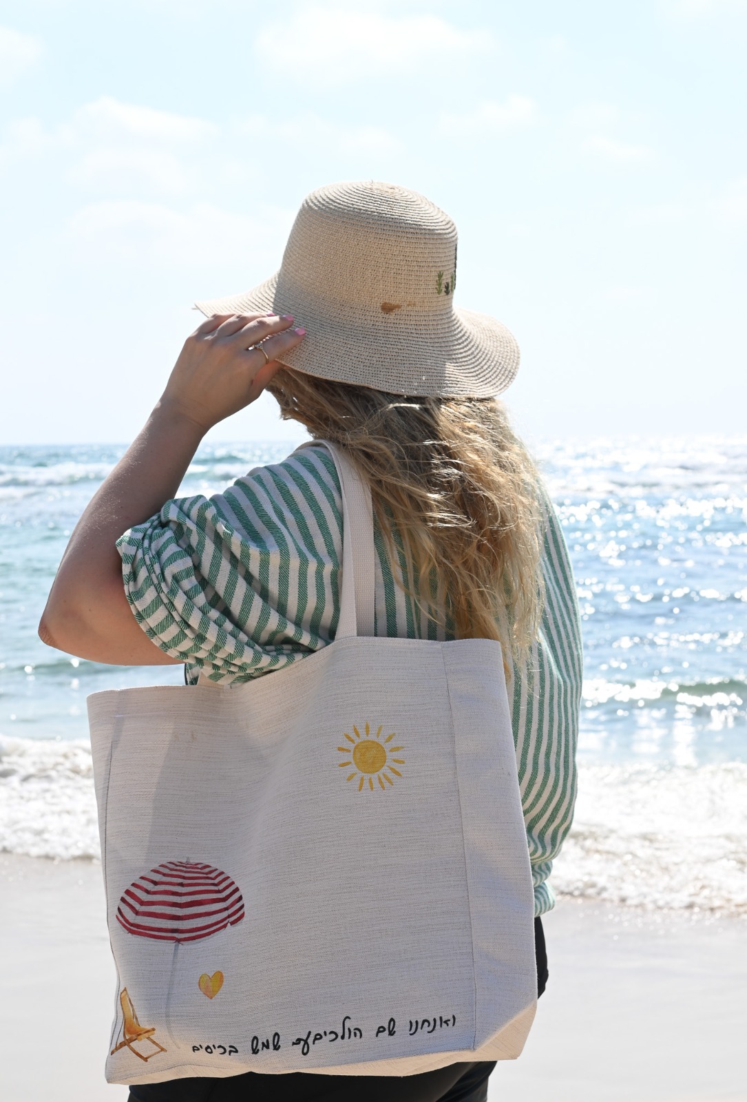 תיק בד קנבס, בצבע טבעי עם ידיות אחיזה מותאמות לנשיאה על הכתף. גודל 37/12/37