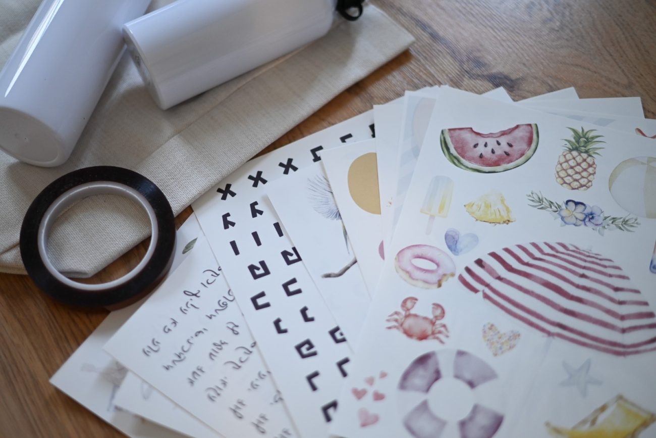 ערכת הבסיס כוללת -30 דפים מיוחדים להעברת איורים ושירים למוצרים, סלוטייפ תרמי, דבק.